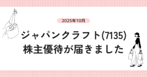 まずはジャパンクラフトホールディングスより株主優待が届きました。